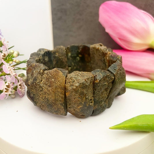 צמיד ענבר גולמי "בוהו" - עבודת יד