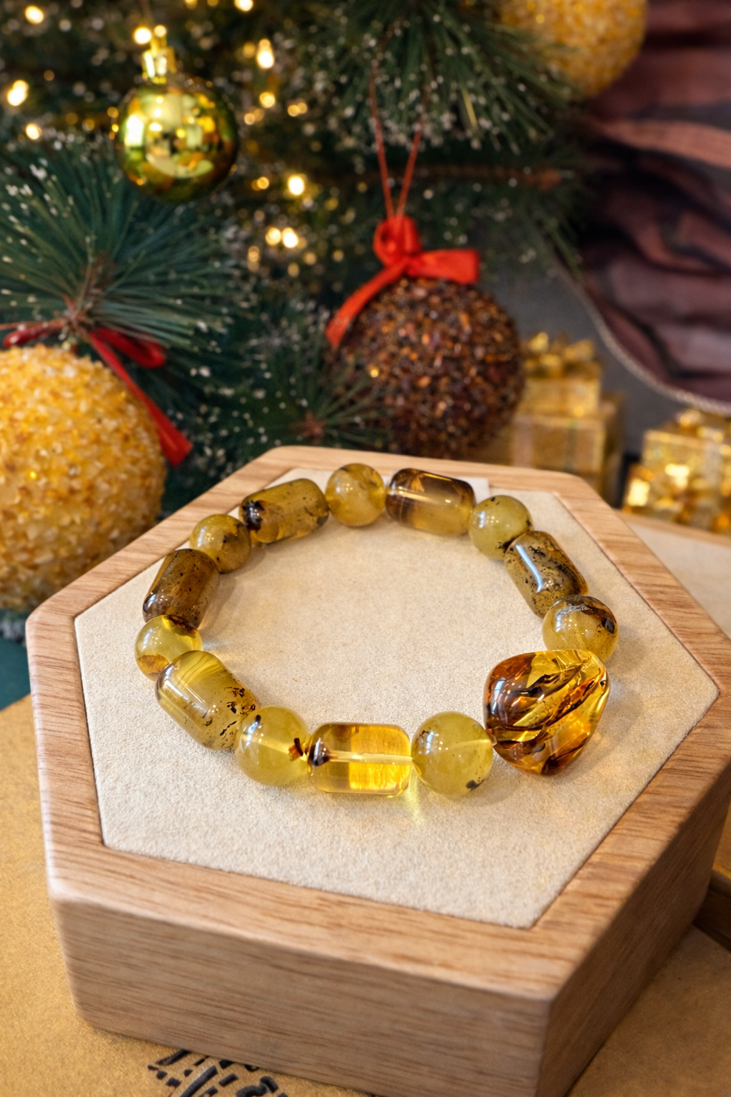 צמיד זה, בעבודת יד, עשוי מענבר בלטית אמיתית, ומציג שילוב יפהפה של גווני דבש חמים וזהב עם תכלילים טבעיים שהופכים כל חרוז לייחודי. הצורות האורגניות וריאציות הצבעים העשירות מדגישות את היופי הטבעי של הענבר ומעניקות לצמיד מראה מעודן אך נינוח. נוח לענידה וקל לעיצוב, הוא מושלם לאלגנטיות יומיומית וגם לאירועים מיוחדים. פריט נצחי המשקף את האותנטיות והחמימות של ענבר טבעי, נוצר בקפידה ובתשומת לב לפרטים.