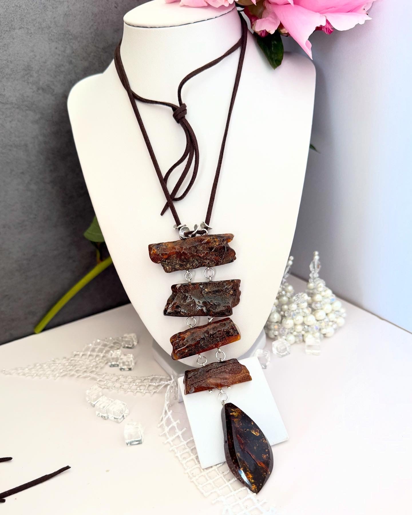 שרשרת קולר ענבר "בוהו גולמי"