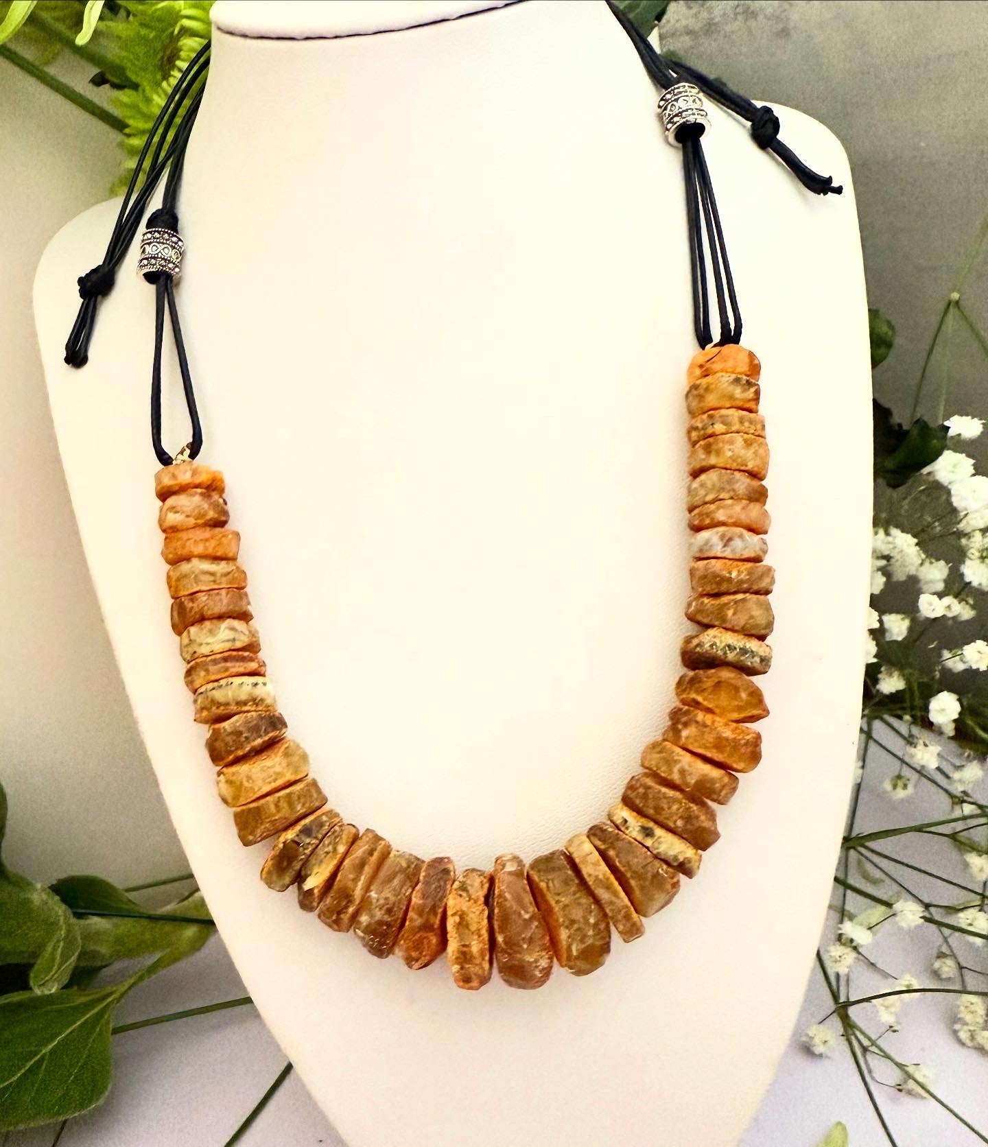 שרשרת דיסקית ענבר "בוהו" - עבודת יד