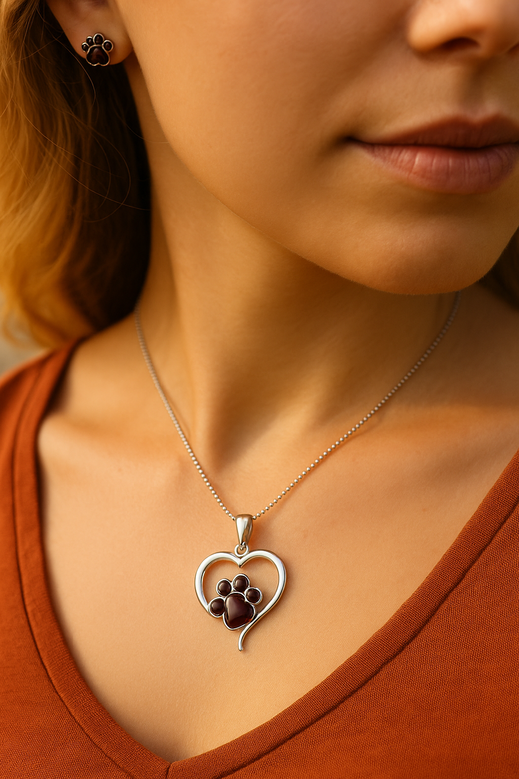 The Amber Paw Heart Pendant combines tenderness and sophistication. Crafted from sterling silver with glowing cherry amber, it radiates warmth and emotion โ perfect as a meaningful keepsake or a gift for animal lovers.