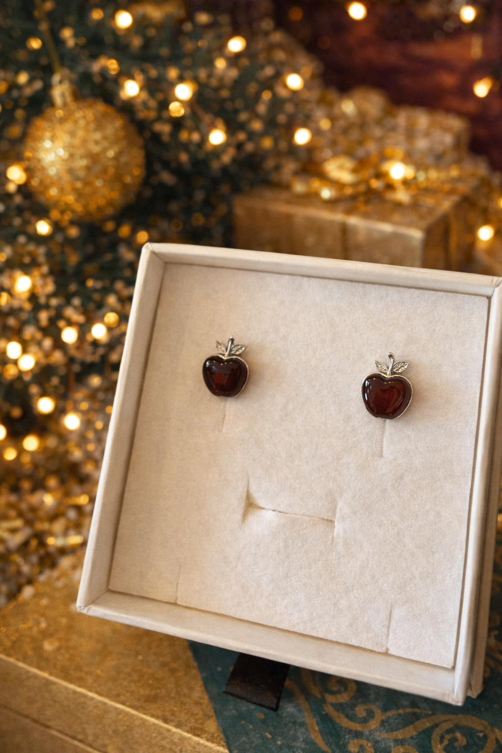עגילי תפוח עדינים אלה עשויים מכסף סטרלינג 925 ומעוטרים בענבר בלט טבעי בגוון עמוק וחם. צורת התפוח המקסימה מסמלת רעננות ואלגנטיות, בעוד הגודל הקומפקטי הופך אותם למושלמים ללבישה יומיומית. קלים ונוחים, הם מוסיפים נופך עדין אך מעודן למראה קז'ואל וקלאסי כאחד. בחירה יפהפייה עבור אלו המעריכים עיצוב מינימליסטי, חומרים טבעיים ותכשיטים בעבודת יד משובחים.