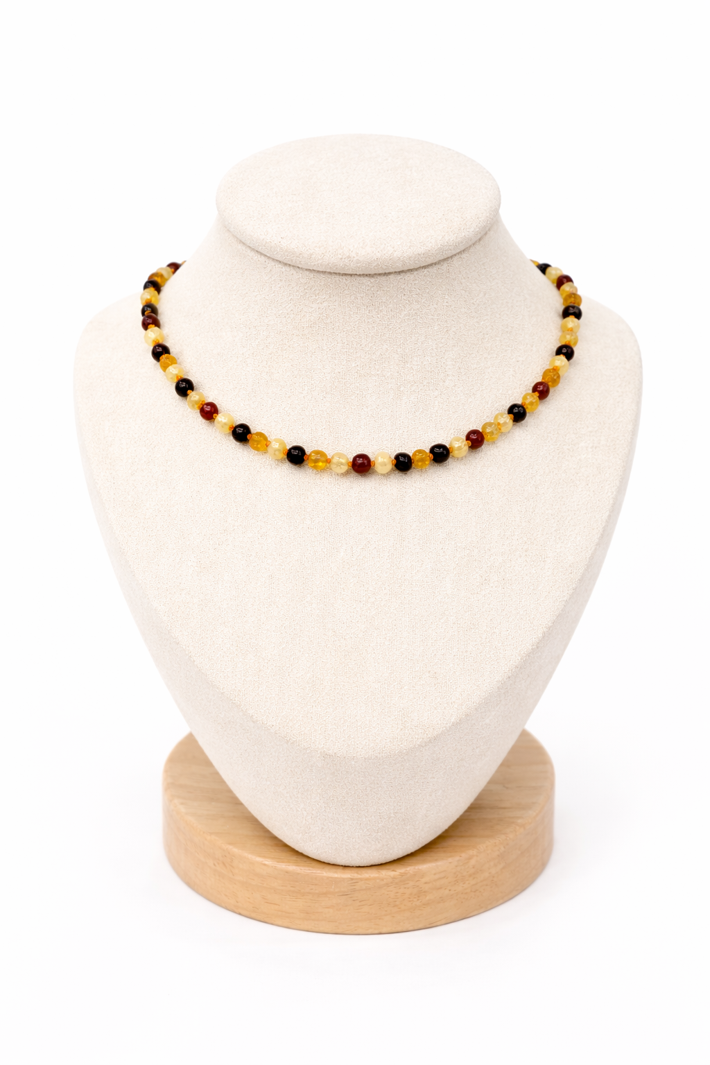 שרשרת ענבר בלטית עדינה זו לתינוקות עשויה בעבודת יד מחרוזי ענבר גולמיים טבעיים 100%. כל חרוז קשור בנפרד לבטיחות ועמידות נוספות, מה שהופך אותו ליפה ופרקטי גם לקטנטנים.