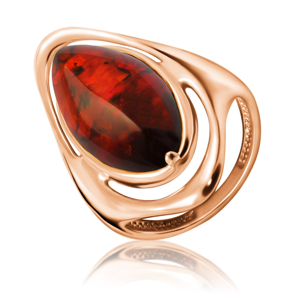 טבעת מעודנת זו מקולקציית "Elegant Oval" מגלמת אלגנטיות מעודנת ועיצוב אמנותי. אבן ענבר בלטית דובדבן גדולה בחיתוך מרקיזה הופכת למרכז, זוהרת בעושר בתוך מסגרת כסף מצופה זהב זורמת ופיסולית.