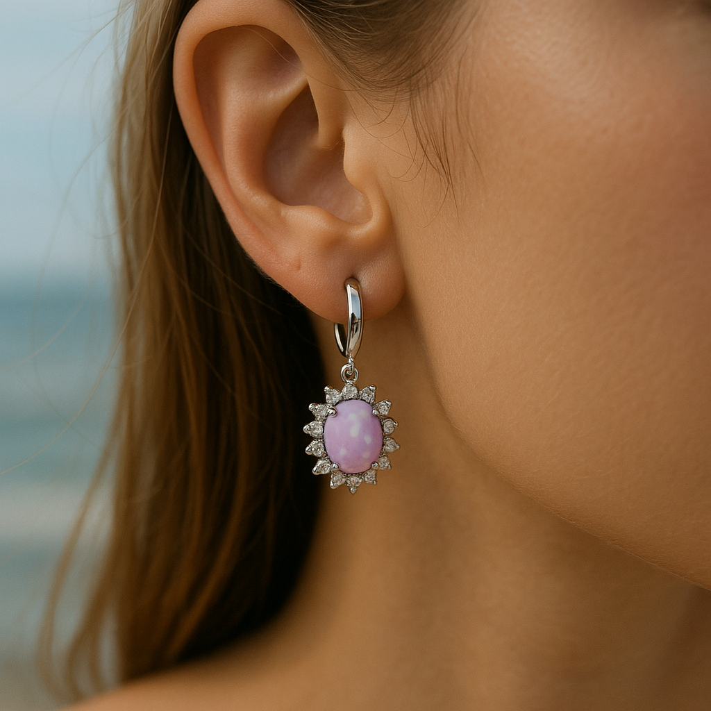 עגילי אופל ורוד זוהרים – כסף סטרלינג ואופל ורוד