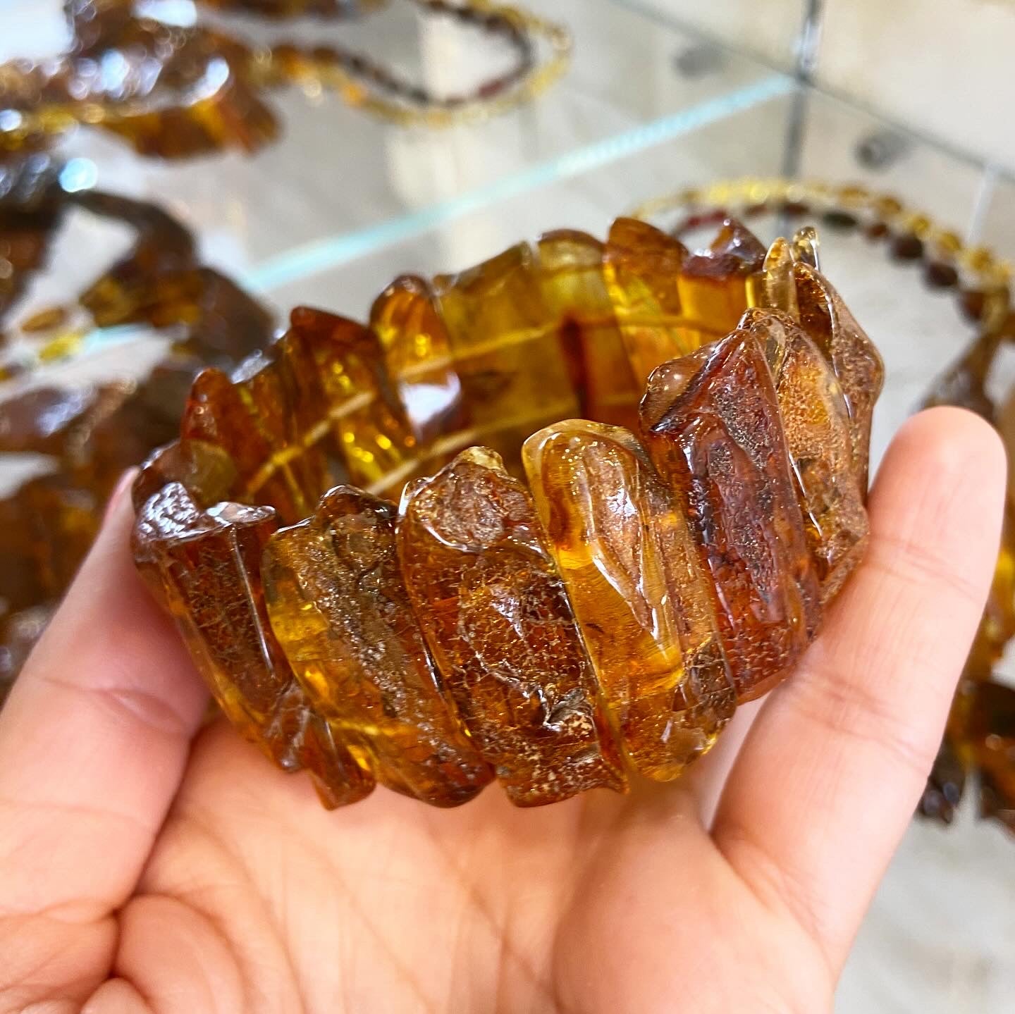 צמיד ענבר גולמי "בוהו" - עבודת יד
