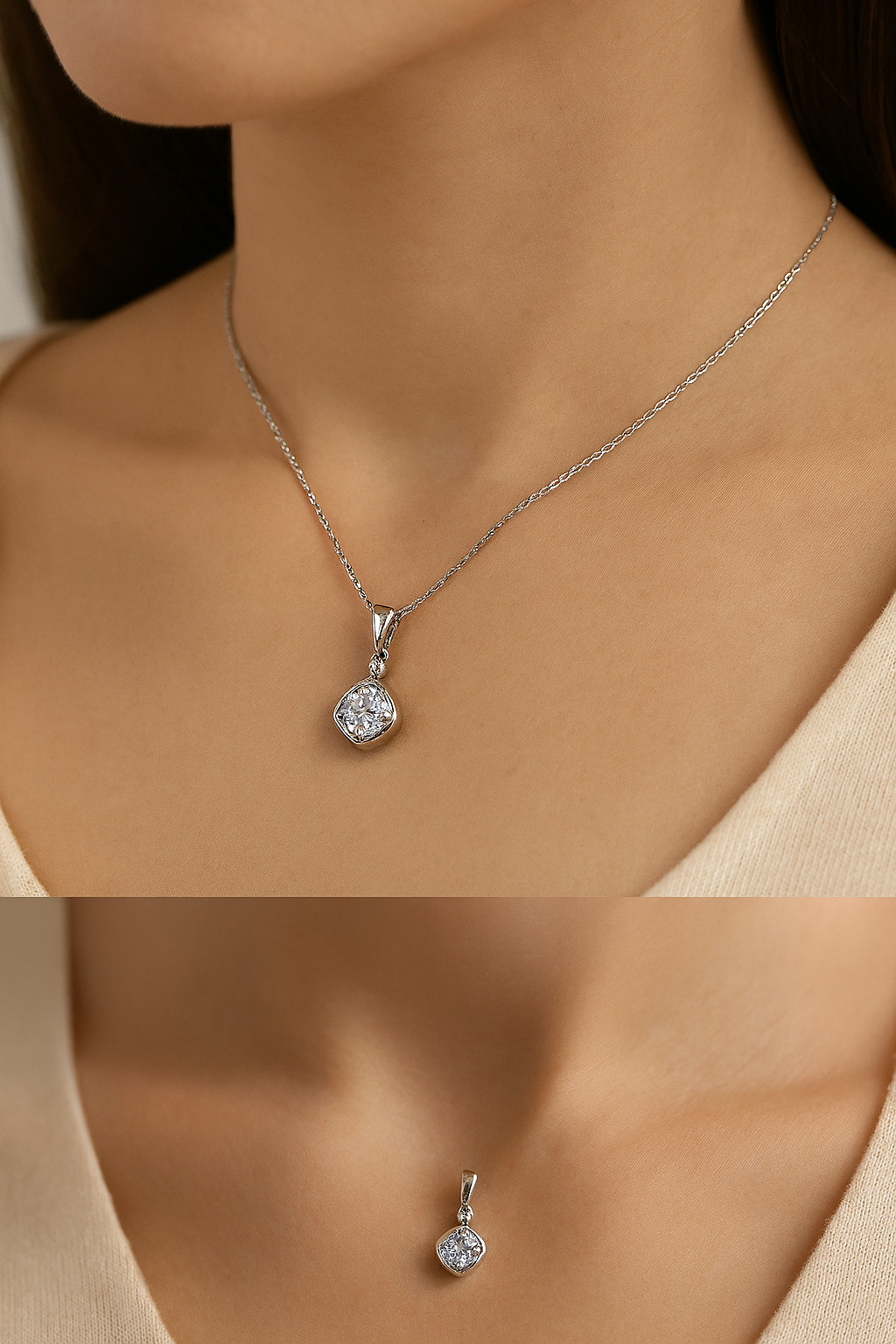 גנטיות נצחית בכל פרט. תליון כסף סטרלינג זה כולל אבן זירקוניה שקופה בחיתוך כרית עם נגיעה עליונה מבריקה, המציעה בדיוק את כמות הניצוץ הנכונה לכל אירוע. בין אם הוא נענד לבד או בשכבות, הוא מוסיף מגע מעודן למראה היומיומי או הערב שלך.