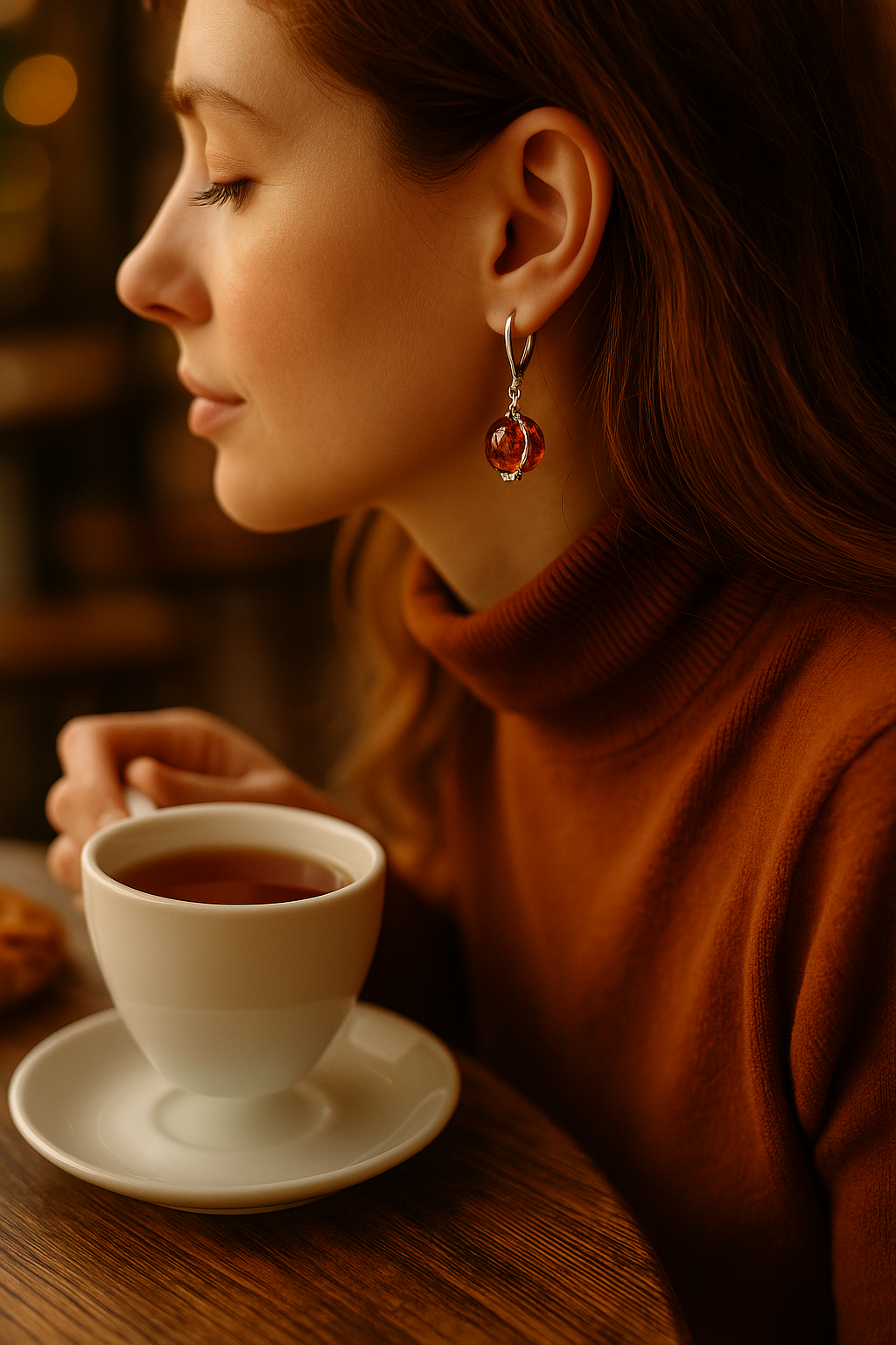 The Amber Sphere Set embodies the warmth and light of the Baltic Sea. Crafted from rhodium-plated sterling silver, each piece features a luminous 15 mm amber sphere — a unique gemstone formed by nature itself. The flowing silver design gently embraces the amber, creating an elegant and organic silhouette. This refined set radiates sophistication and timeless charm, making it a perfect gift or a captivating addition to any jewelry collection.