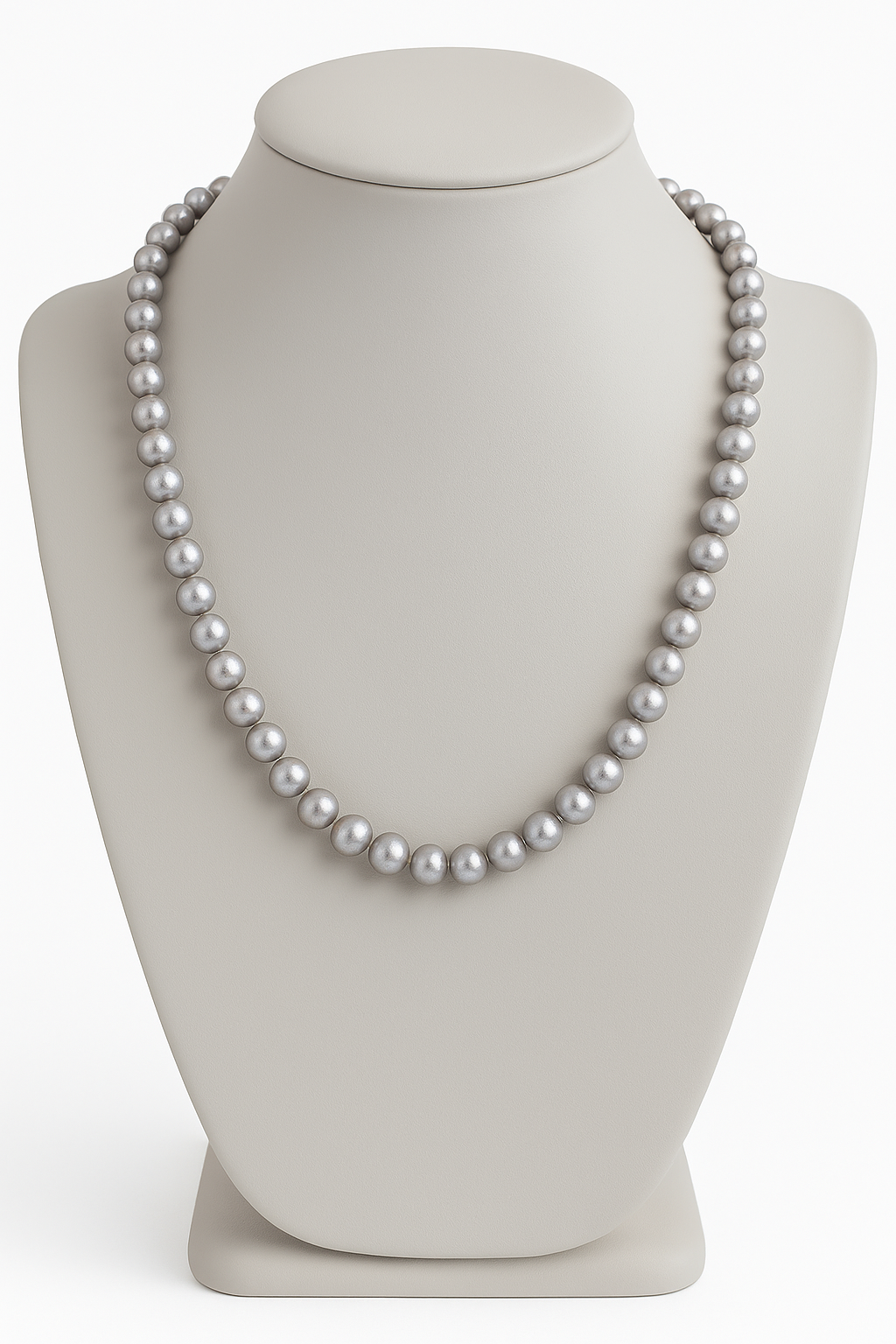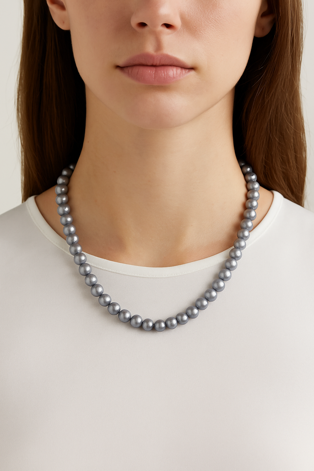 Elegant and luminous, the Moonlight Glow necklace captures the serene beauty of a moonlit night. Featuring natural silver freshwater pearls sized 7–8 mm, each with a soft metallic sheen, this piece radiates sophistication and modern charm. Perfect for both classic and contemporary looks, it adds a touch of luxury to any outfit.