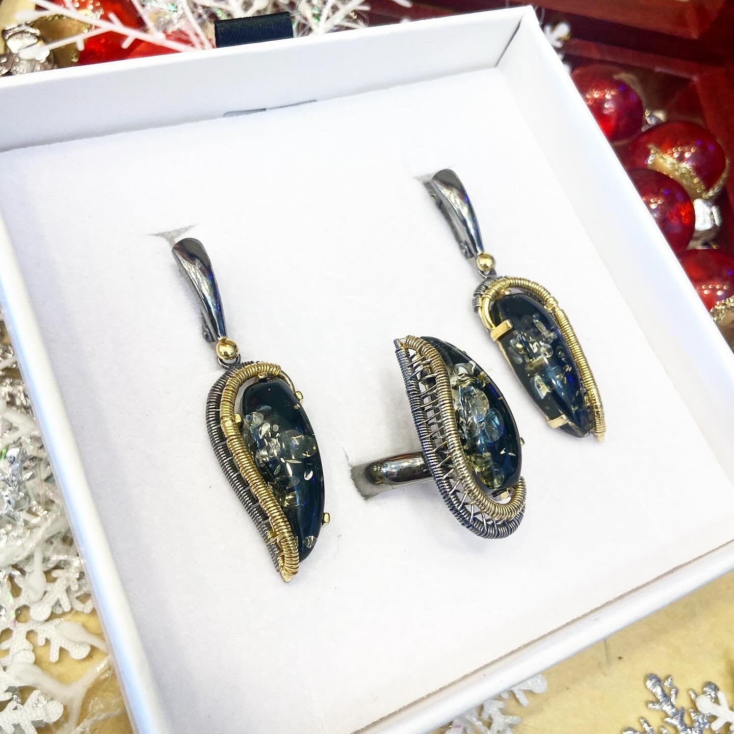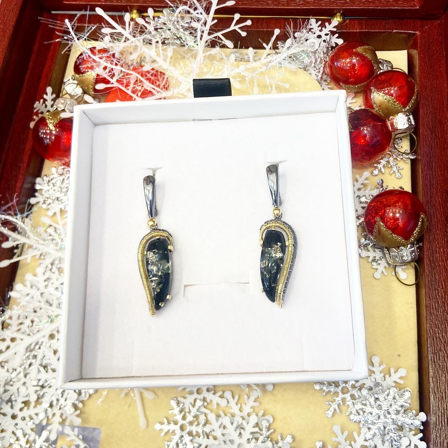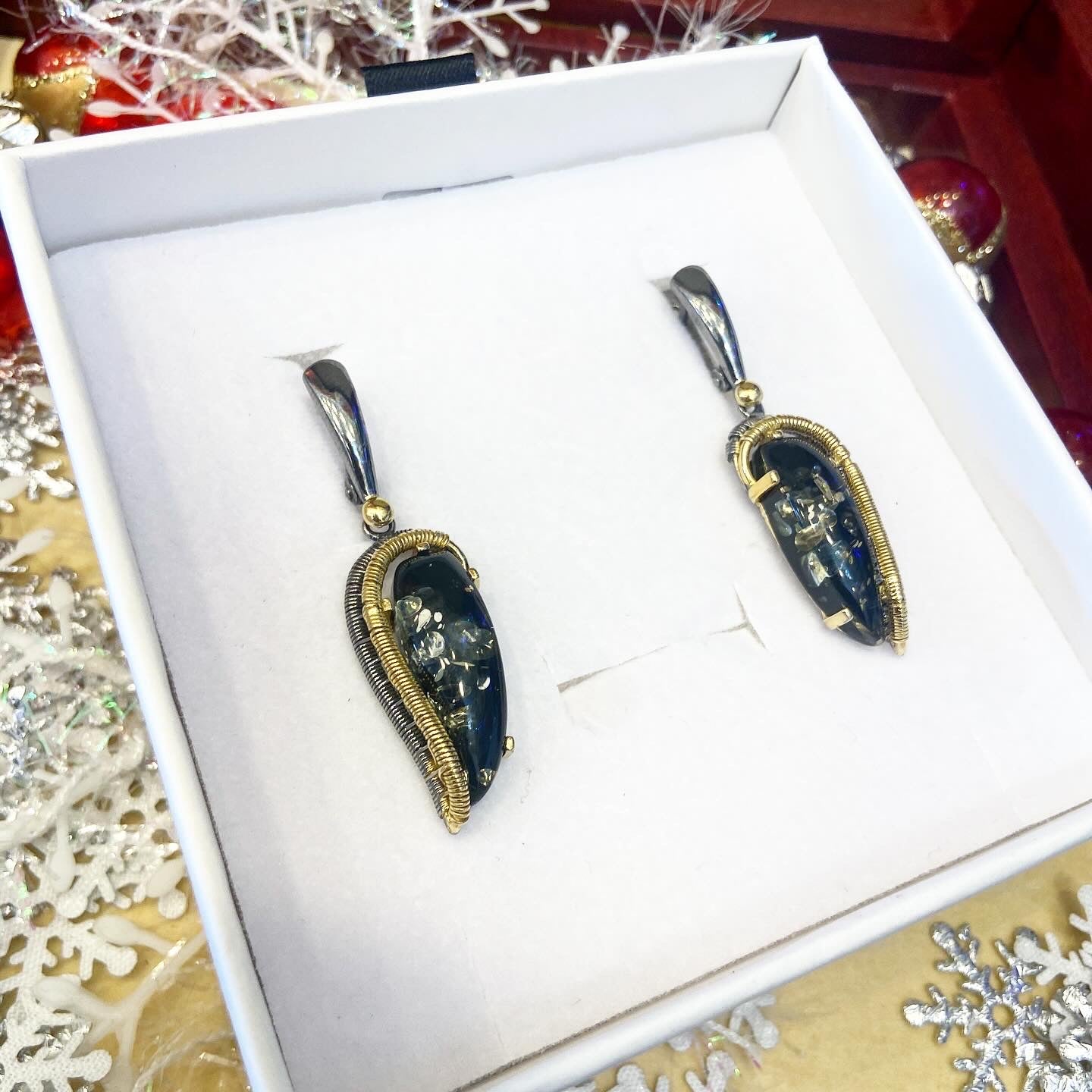 Earrings in 925 sterling silver with gold plating and oxidation.
