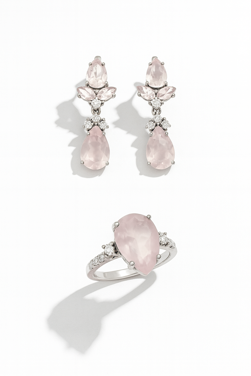 Design: Elegant elongated setting with soft pink gemstone