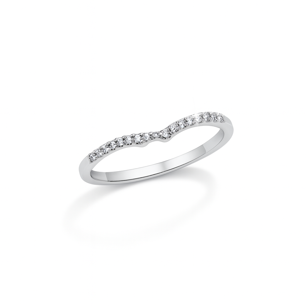 • This simple pave band with a twist is a great alternative to the traditional wedding band. It's a perfect anniversary gift! Great for stacking!