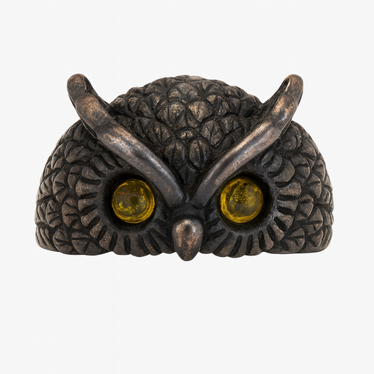 «Сова с янтарными глазами» – Серебряное кольцо с позолотой
