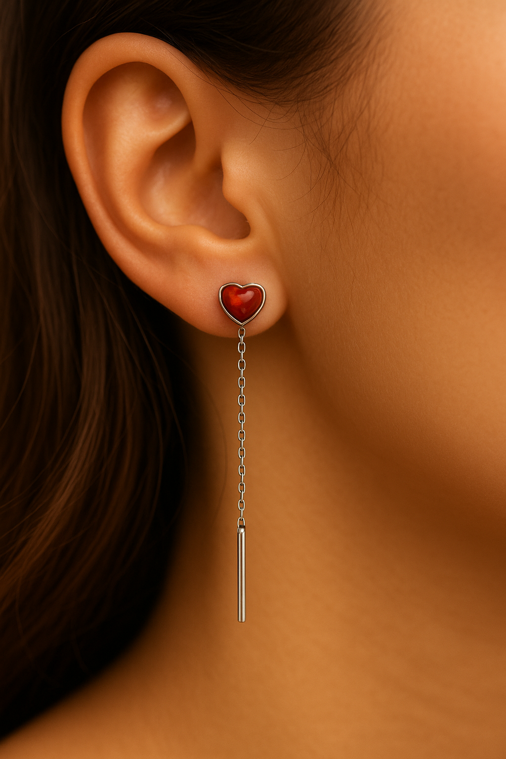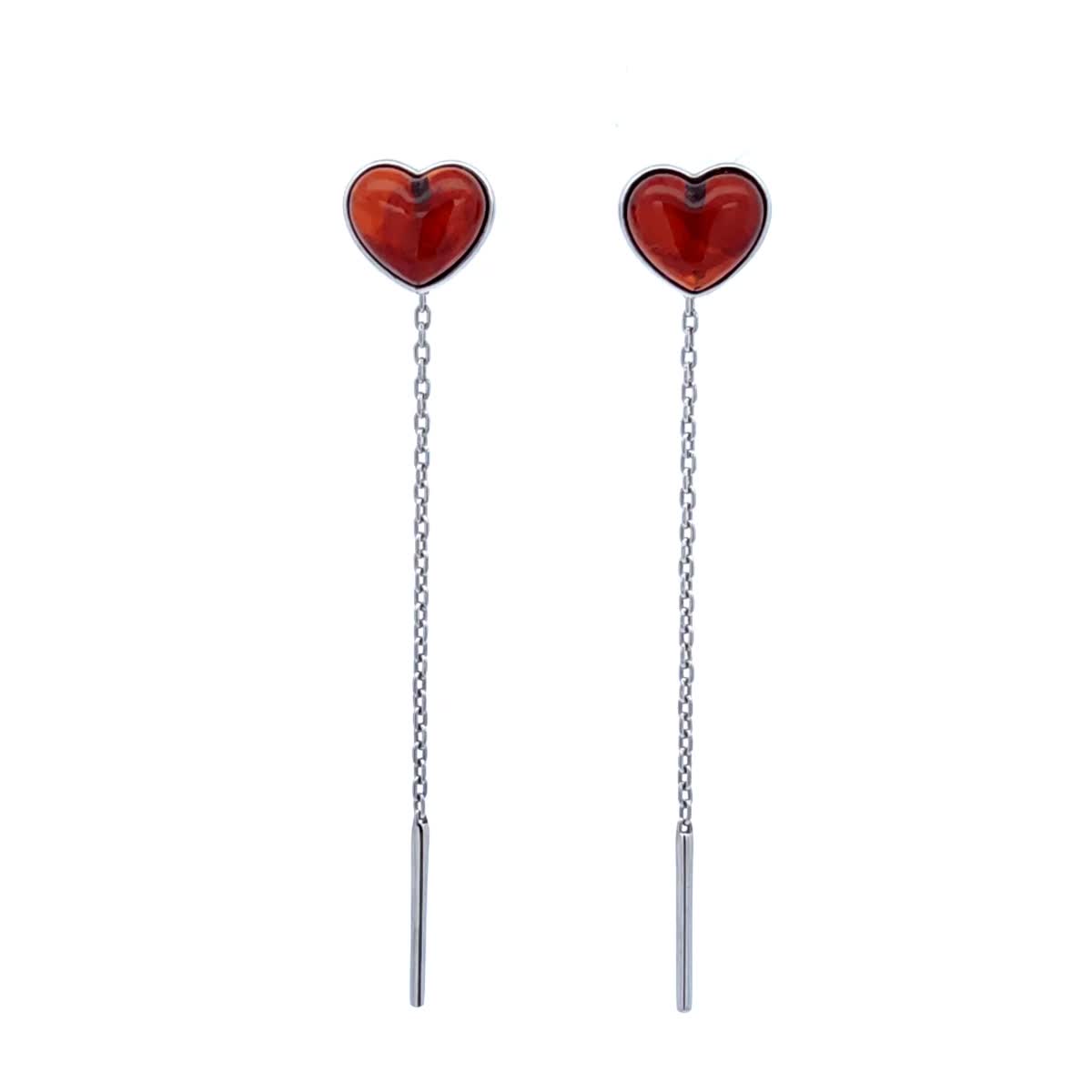 Эти нежные и романтичные серьги-нити украшены сияющим балтийским янтарём в форме сердца, оправленным в стерлинговое серебро. Элегантная цепочка добавляет изящности движению, делая серьги идеальным аксессуаром как на каждый день, так и для особых случаев. Лёгкие, стильные и непринуждённо женственные — прекрасный штрих к любому образу.