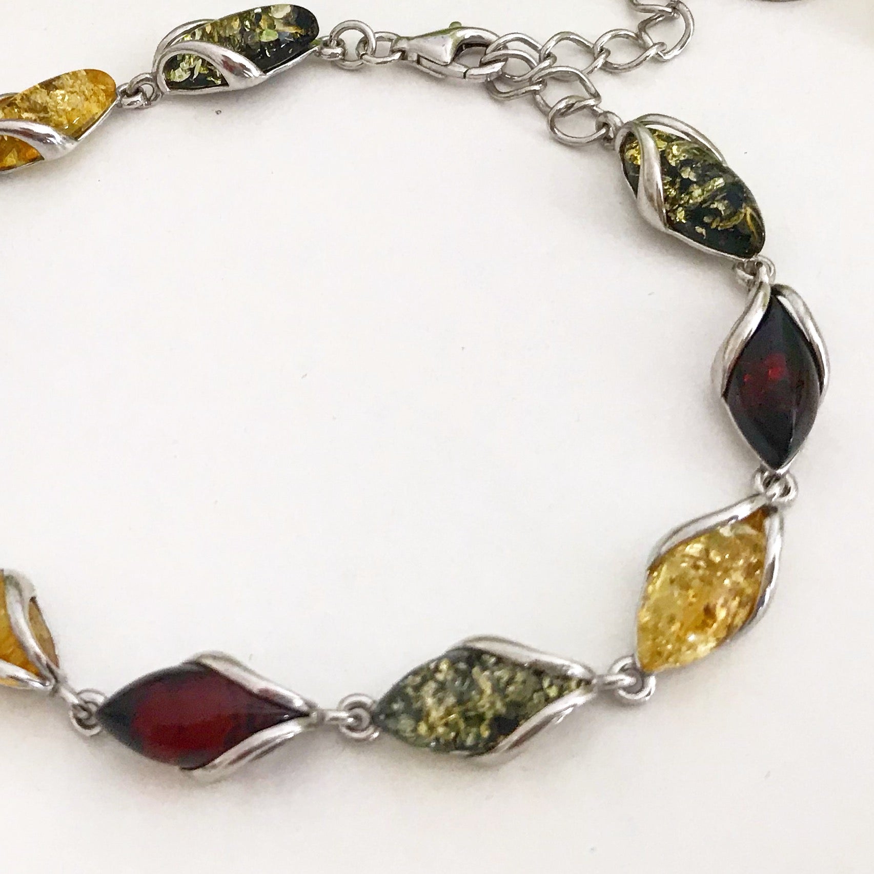 Браслет серебро 925 пробы с натуральным янтарем "Подснежник"