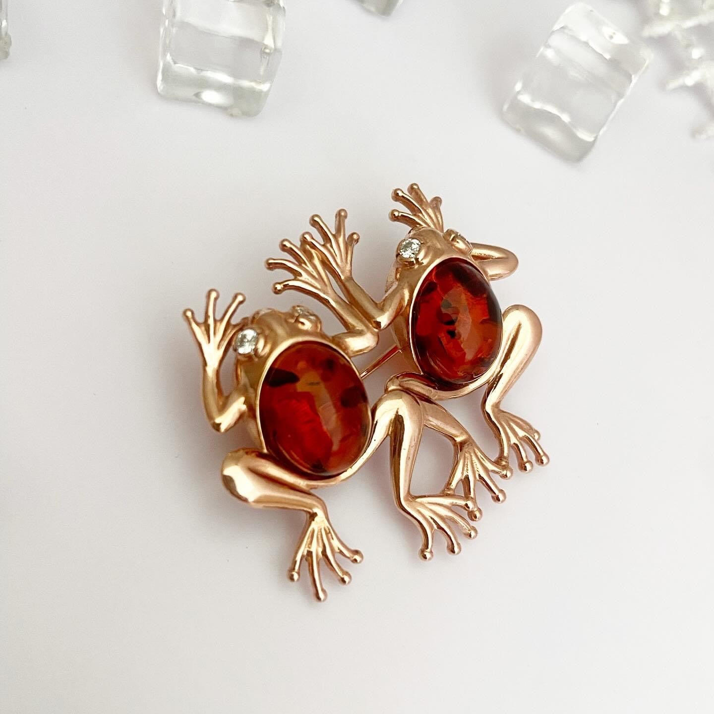 Брошь "Лягушка" с янтарем
