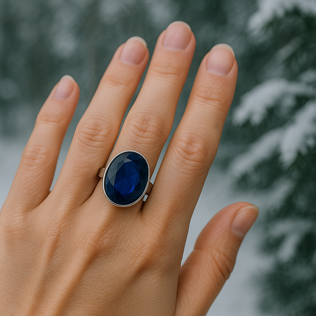 Эффектное и завораживающее кольцо с кабошоном из натурального карибского янтаря глубокого синего цвета, закрепленным в оправе из чистого серебра 925 пробы. Крупный ограненный камень создает эффектную игру света, делая это украшение по-настоящему выразительным. Каждое кольцо изготавливается вручную, что гарантирует его уникальность и исключительное качество. Регулируемая ширина ободка обеспечивает удобную посадку, позволяя носить кольцо без усилий как каждый день, так и по особым случаям.