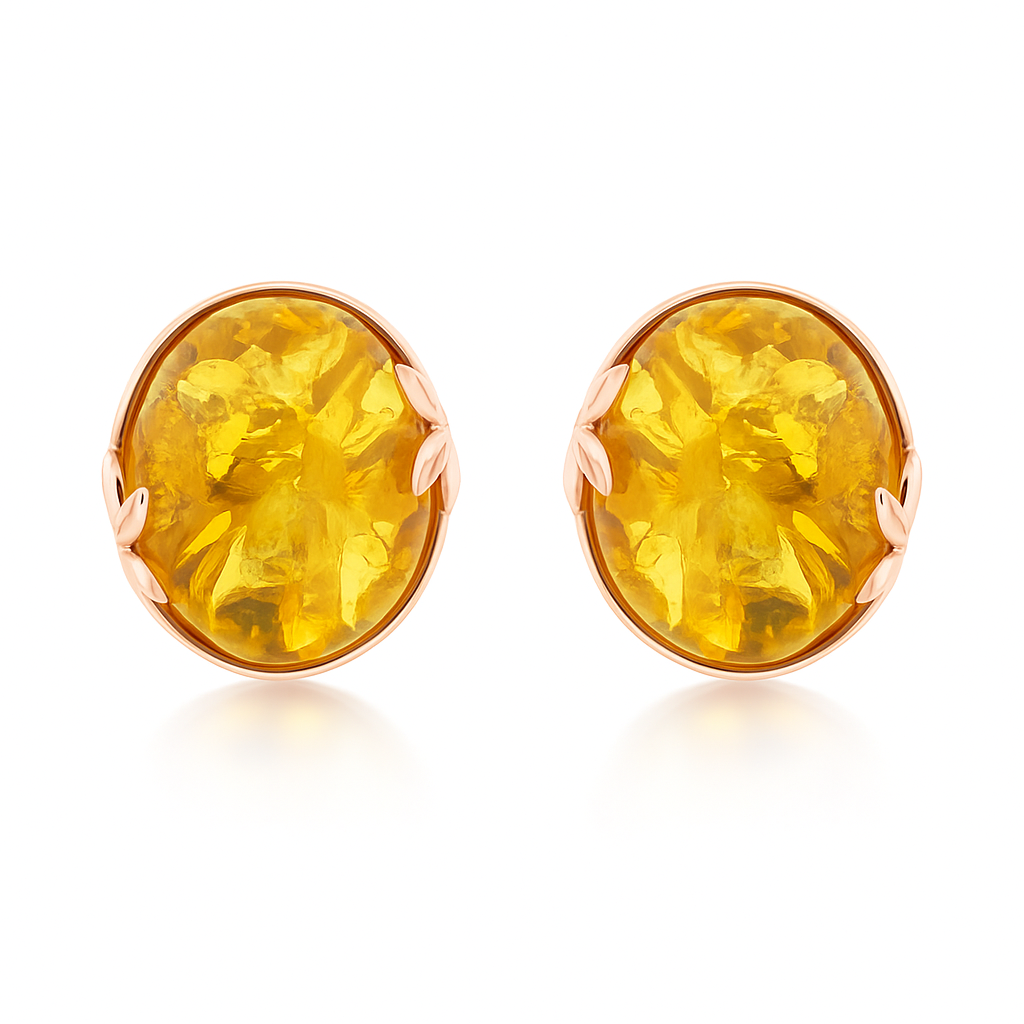 Эти элегантные серьги-гвоздики из коллекции Golden Leaf Whisper подчеркивают природную красоту золотистого балтийского янтаря.