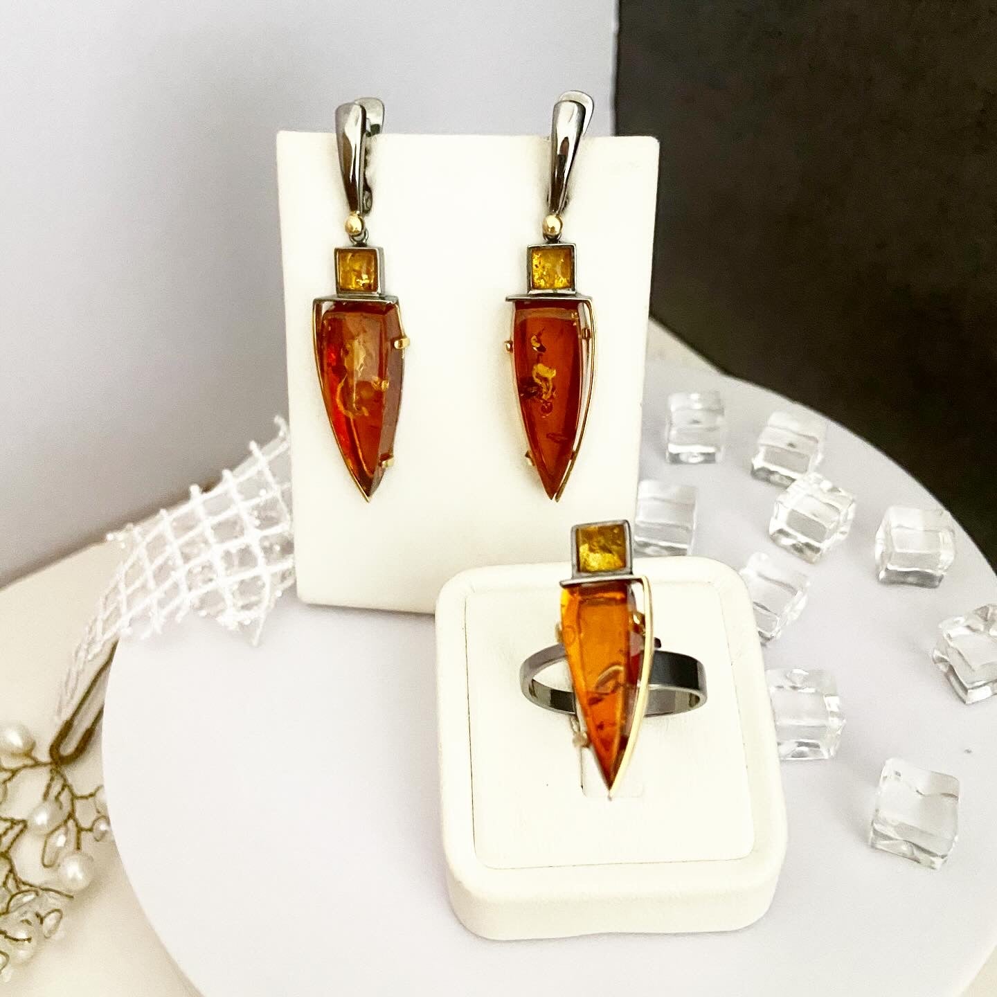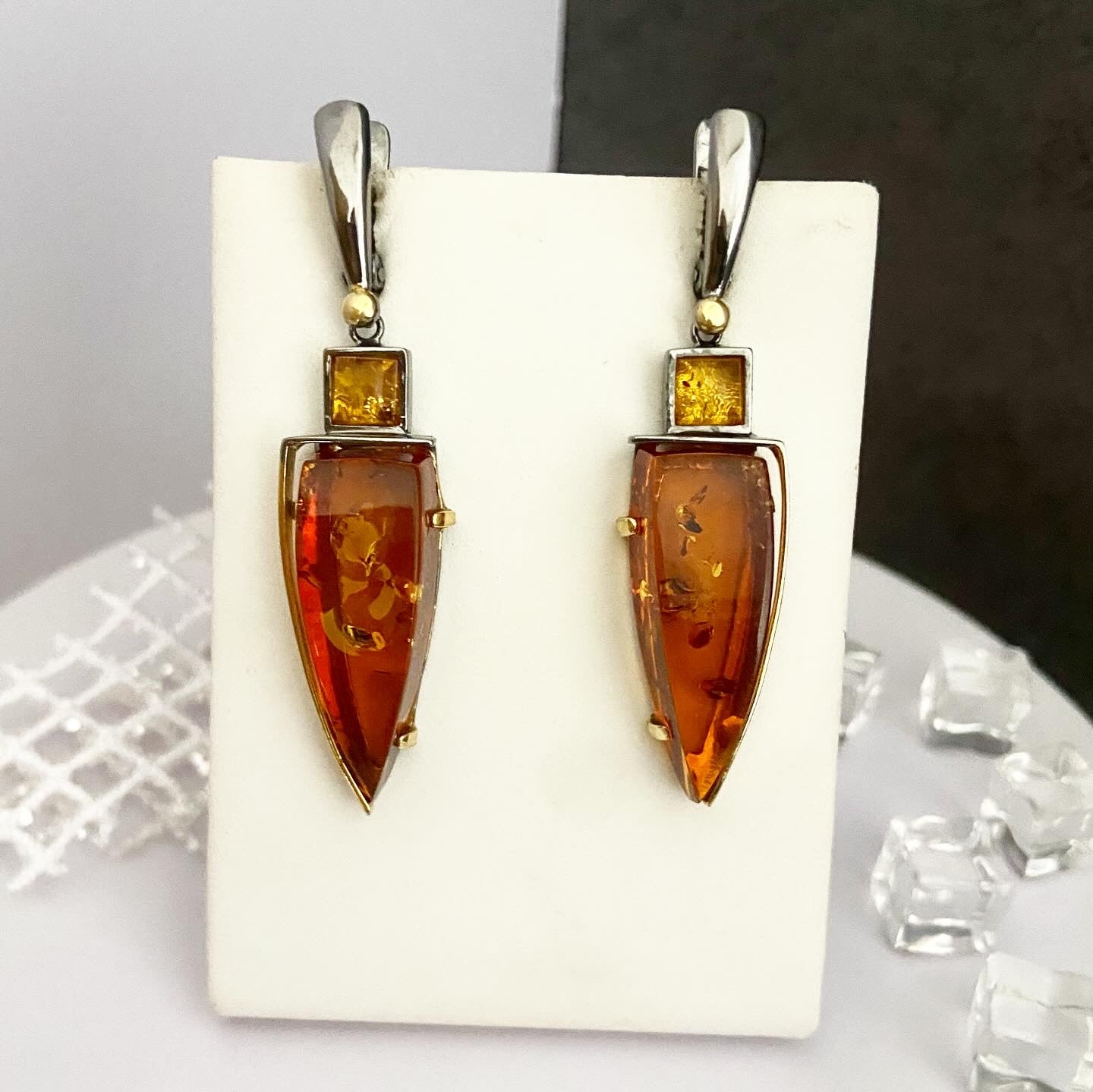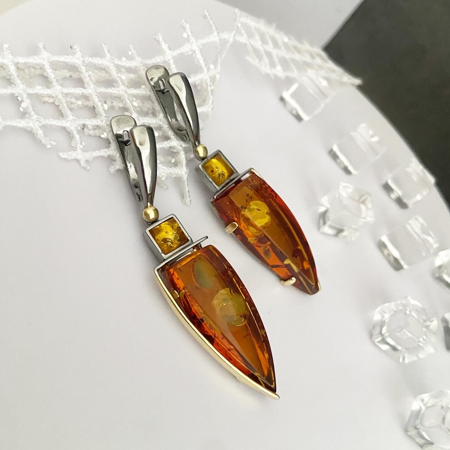 Янтарные серьги ручной работы «Геометрия»