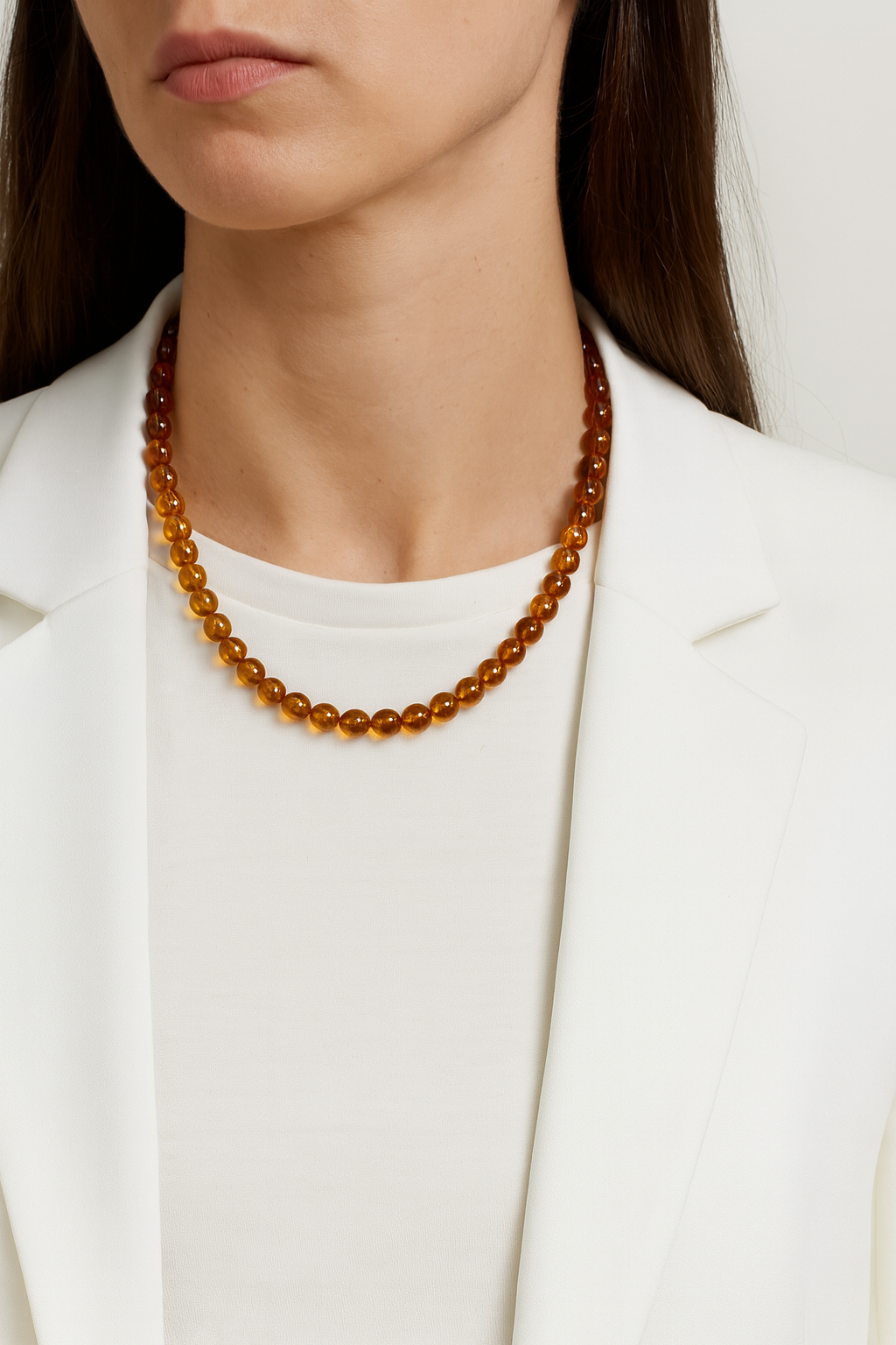 Нестареющая классика — это ожерелье из натурального балтийского янтаря с идеально отполированными круглыми бусинами с тёплым коньячным отливом. Элегантное, лёгкое и полное естественного очарования, оно легко дополнит любой стиль. Прекрасный выбор для любителей янтаря и значимый подарок с характером и историей.
