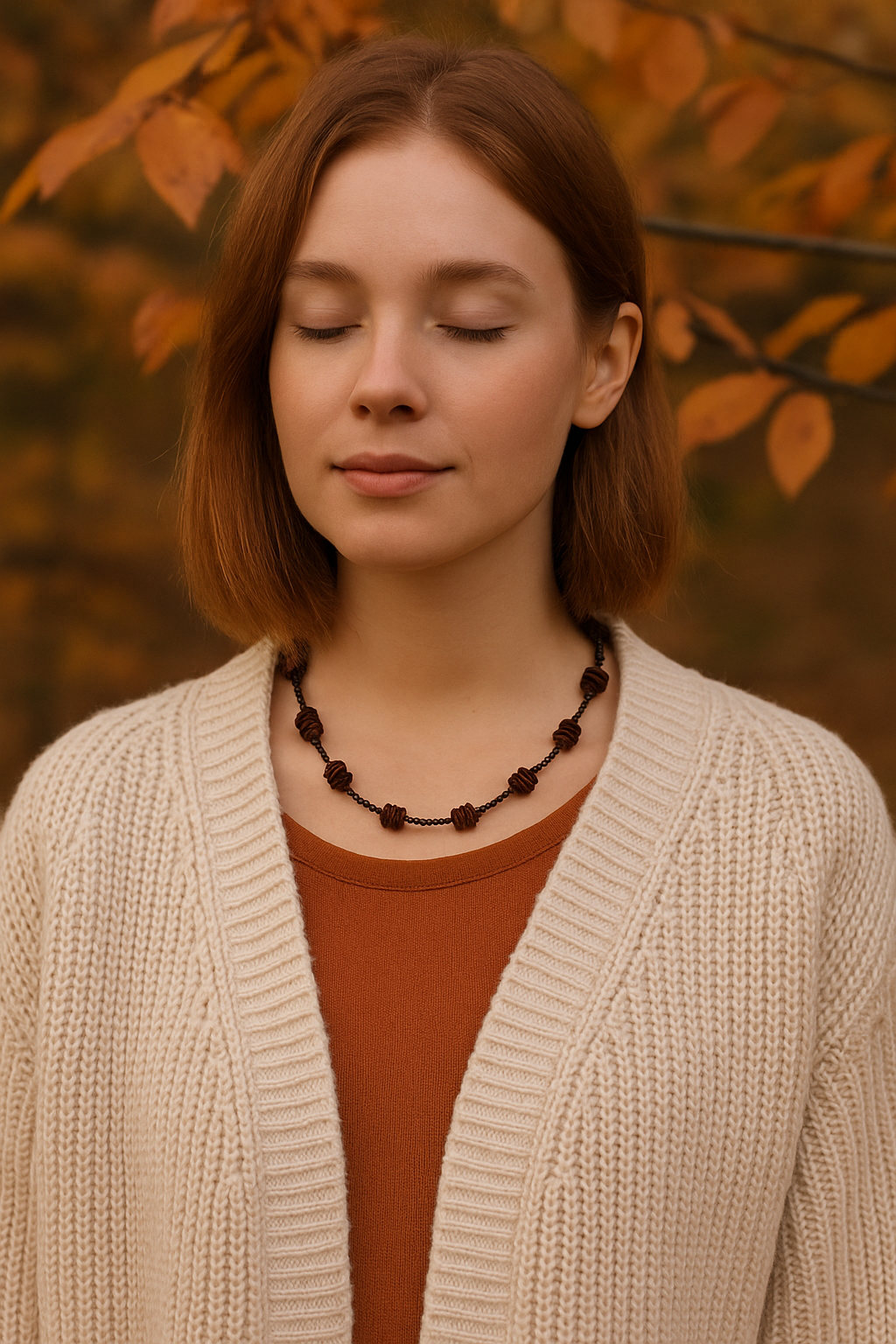 Маленькие полированные аметистовые бусины добавляют изысканный акцент, а более крупные янтарные сферы создают яркий, роскошный центр внимания.