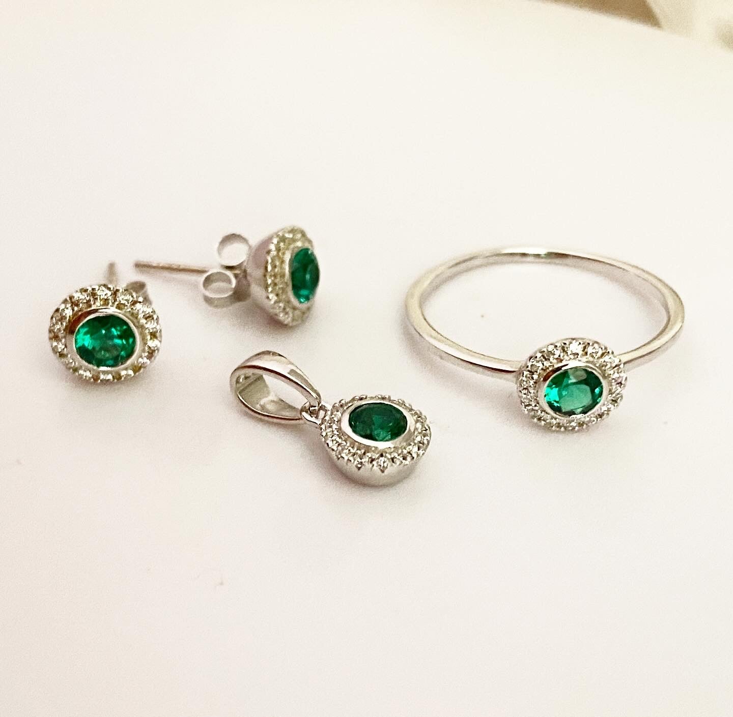 Комплект: серьги, кольцо и кулон с зеленым агатом