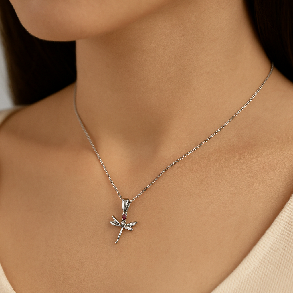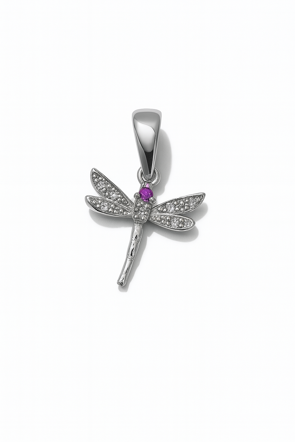 Изящная стрекоза, запечатлённая в полёте, — эта очаровательная подвеска изготовлена из серебра 925 пробы и инкрустирована сверкающими белыми цирконами. Небольшой фиолетовый камень в центре добавляет игривый, яркий штрих, делая это украшение символом лёгкости, преображения и летнего волшебства.